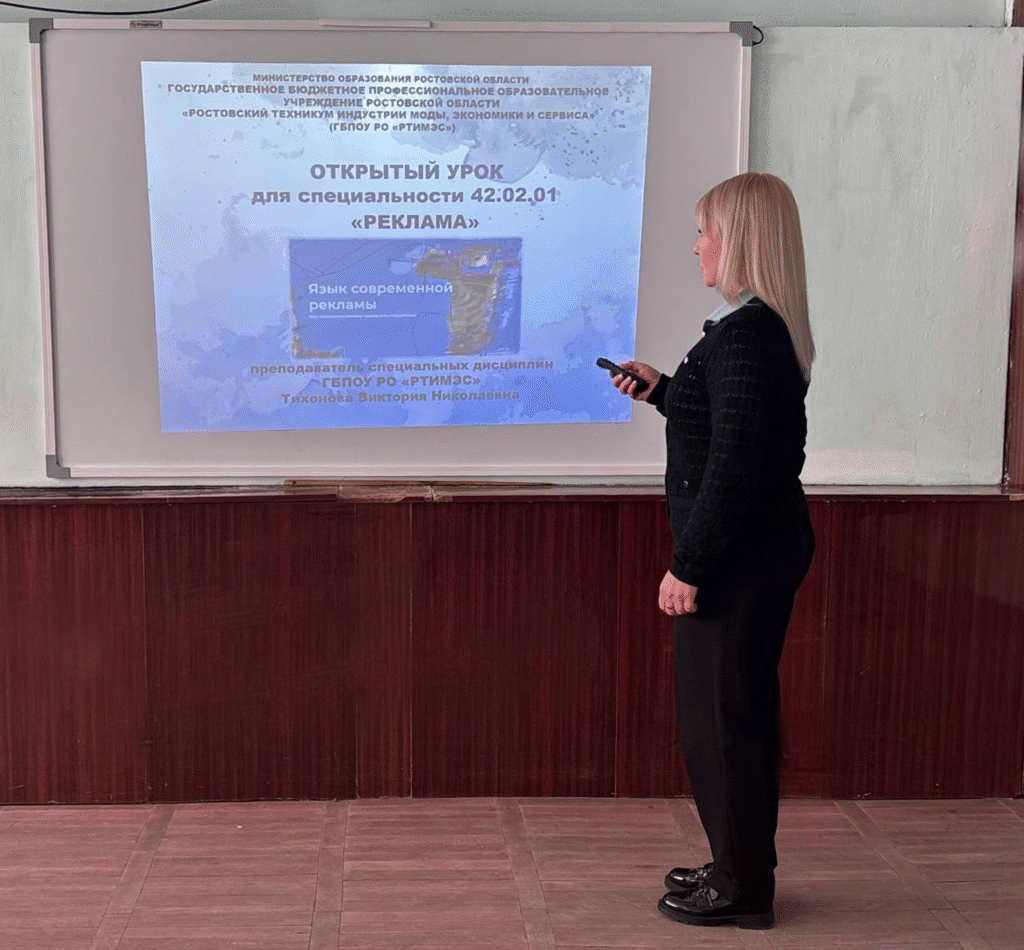 Открытый урок для студентов специальности 42.02.01 «Реклама» провела Тихонова Виктория Николаевна.